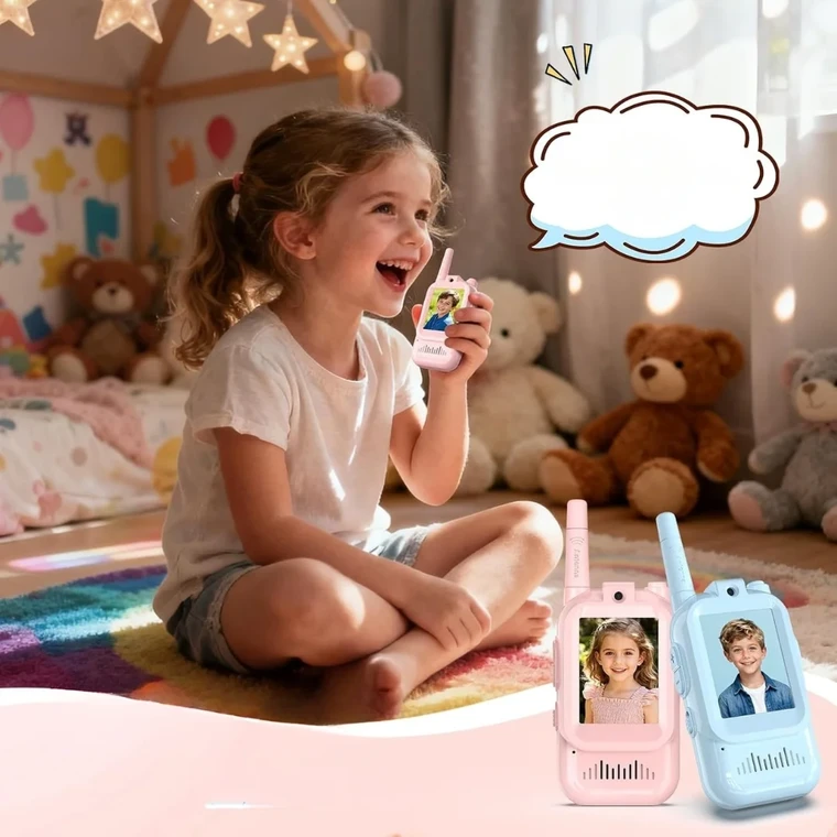 📺 ¡Video en Vivo e Instantáneo! Gracias a su pantalla HD integrada, los niños no solo se escucharán, ¡se verán las caras en tiempo real! Es como tener su propio videollamada segura mientras juegan al escondite, exploran el jardín o se comunican de habitación en habitación. ¡La diversión cobra vida!